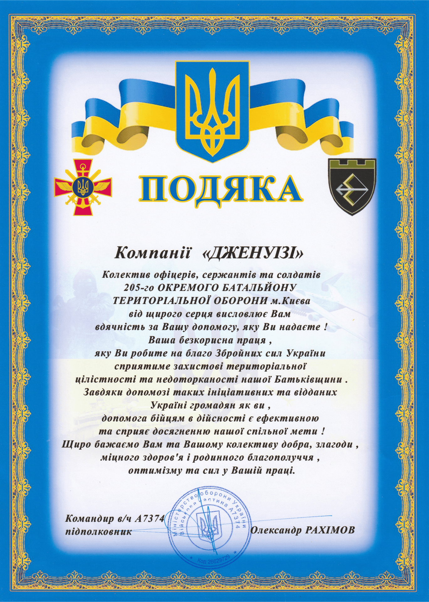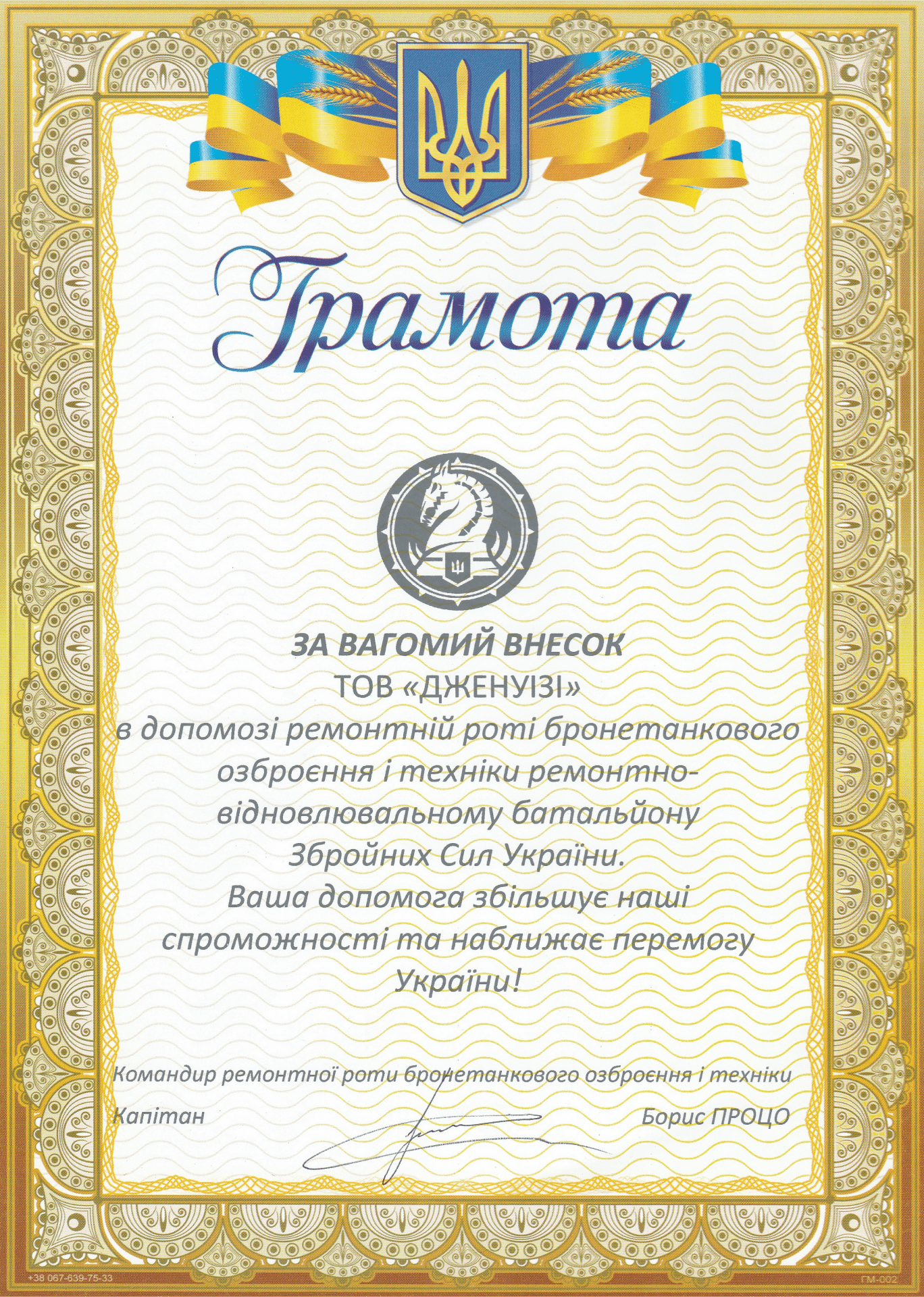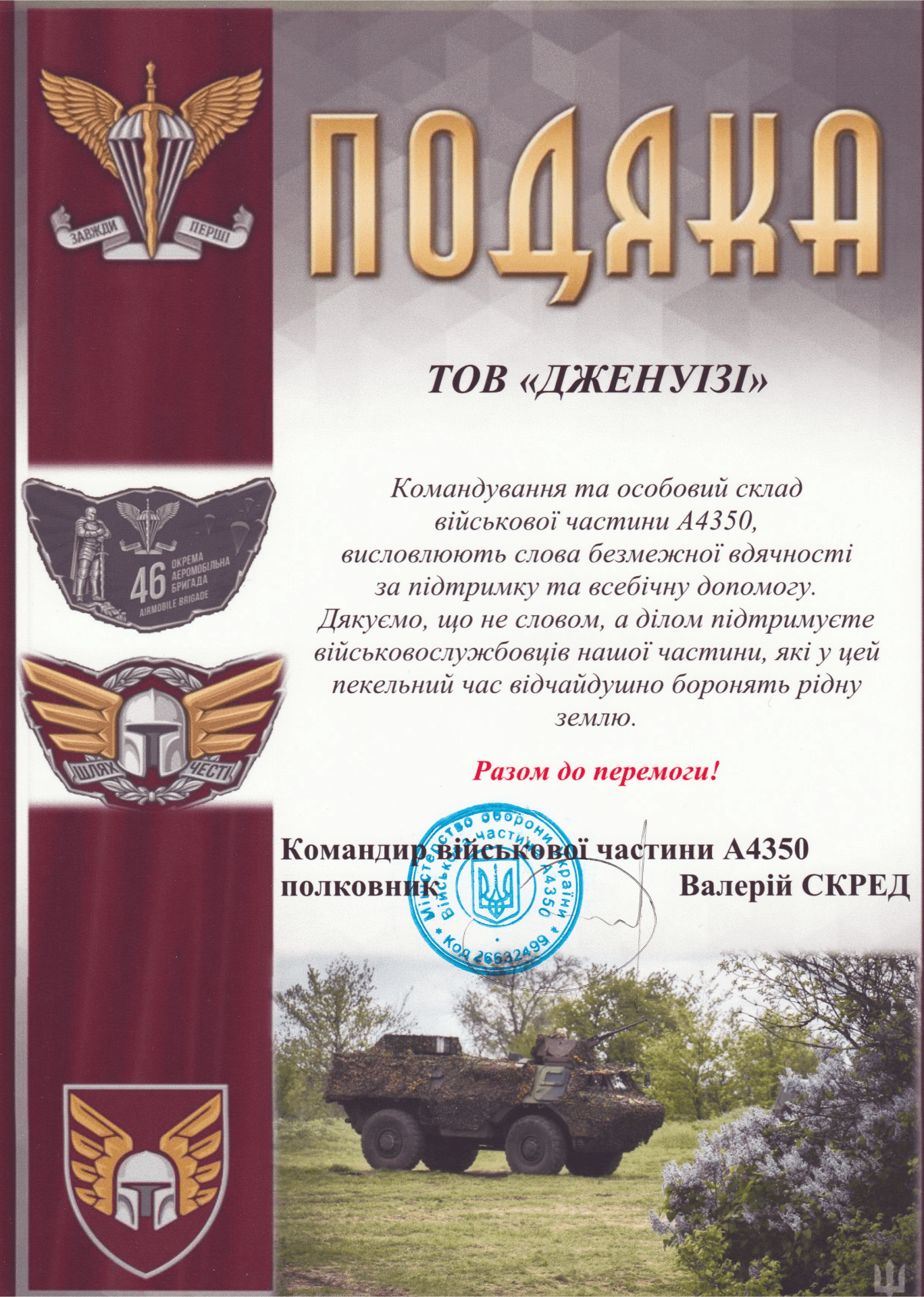 You can support our Army and civilians by donating any amount in the way that’s most convenient for you. We prioritize spending on humanitarian aid for civilians and essential equipment for our Armed Forces and Territorial Defense—such as vehicles, thermal imagers, helmets, body armor, drones, generators, and radios. We provide full transparency and report on every cent.